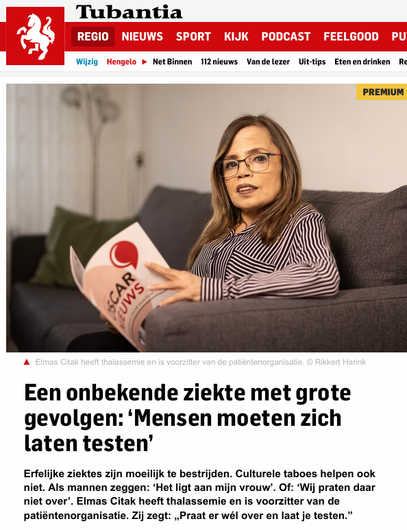 Daarnaast besteedde Dagblad Tubantia op 17 mei 2025 extra aandacht aan thalassemie. Dit artikel belicht de kernpunten: bewustwording, de impact van de ziekte, preventie en het belang van bloeddonatie – vooral onder mensen met een niet-westerse migratieachtergrond.